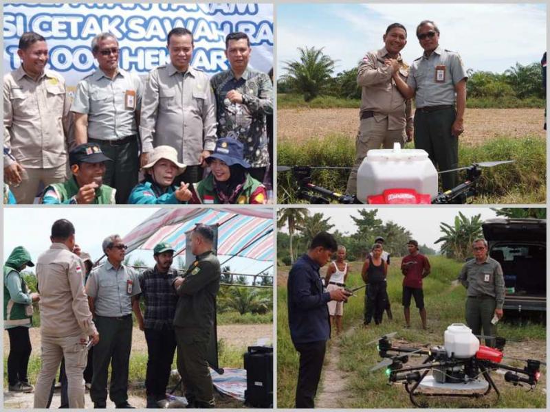 Kepala BBPP Lembang, Ajat Jatnika selaku PJ Brigade Pangan Riau turut hadir untuk memastikan pemanfaatan teknologi berjalan optimal, khususnya penggunaan drone dalam kegiatan tanam.