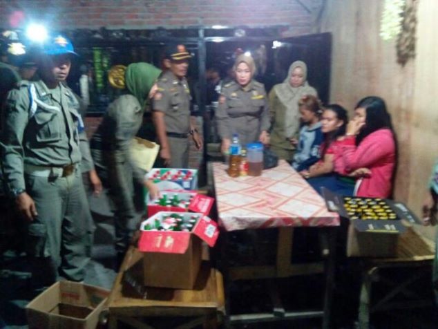 Ada 16 botol miras berbagai merek diamankan petugas Satpol PP di warkop itu. Termasuk diantaranya satu jerigen berisi tuak.