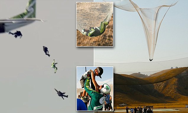 SEORANG penerjun payung Amerika menjadi manusia pertama di dunia yang melompat dari ketinggian hampir 4.000 meter tanpa menggunakan parasut dan mendarat di jaring kawat.