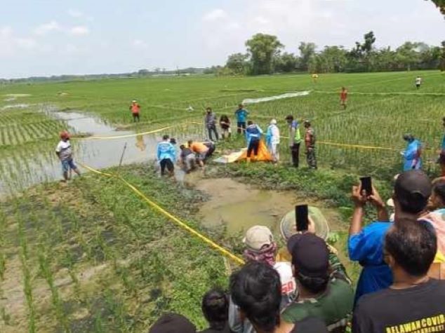 Jatim - Warga Desa Legundi digegerkan dengan penemuan mayat pria tanpa identitas di persawahan desa setempat, Kecamatan Karangjati, Ngawi, Minggu (10/4). Mayat ini ditemukan oleh seorang warga yang sedang bertani di sawah tersebut, kemudian melaporkan ke perangkat desa.