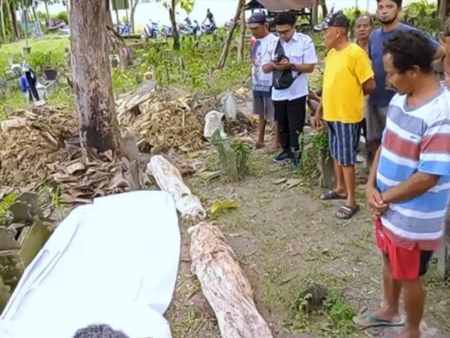 Jenazah tersebut akhirnya dimakamkan lagi oleh warga setempat secara gotong royong. Dalam unggahan video amatir, dua sosok mayat yang muncul ke permukaan itu terbalut kafan yang masih utuh.
